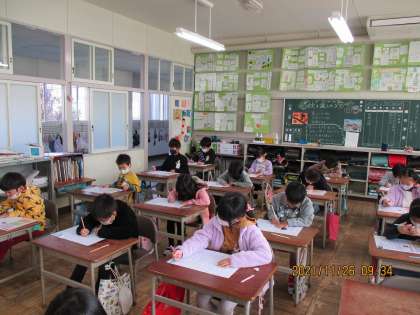 2年生になり、140字ほどの新出漢字を学習しました。今日は2学期に習った「冬休みまでの漢字」のテストを行いました。文字の形もきれいに書くことができるようになってきました。