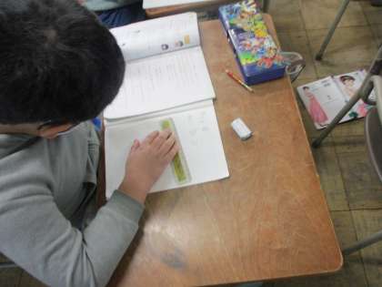 今日は算数の練習を行いました。今まで勉強したことを教科書で調べたり、友達に聞いたりしながら集中して練習に取り組みました。