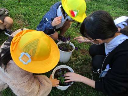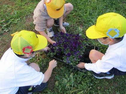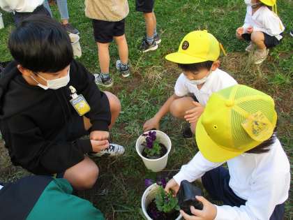 今日は6年生のお兄さんやお姉さんと一緒にパンジーを植えました。