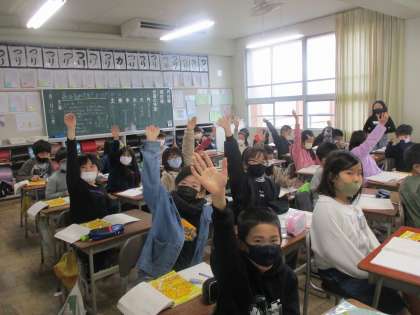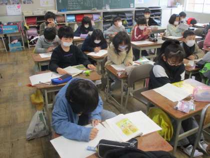 今日は「3年とうげ」の内容を読み取りました。教科書を使って文の意味やおじいさんの気持ちを考えました。友達の発表のに拍手も起こり、とても和やかな雰囲気での授業となりました。