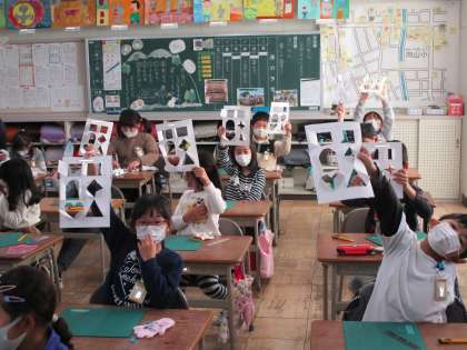 カッターナイフの使い方を学習し、切る練習をしました。紙を押さえる手は軍手や手袋でガードしていましたが、ハラハラドキドキでした。子どもたちの集中力は素晴らしかったです。2日間練習してずいぶん上手になりました。1月には本番です!作品作りが楽しみです。