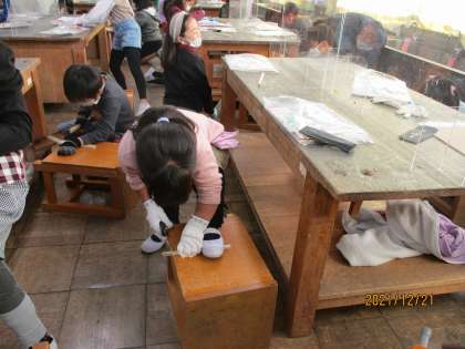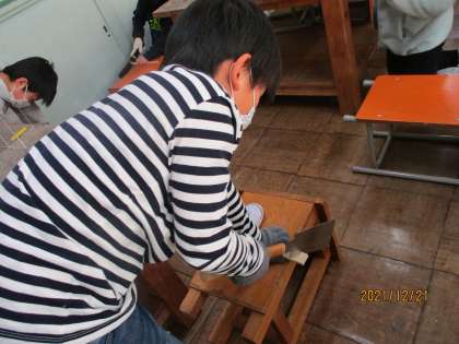 初めは力いっぱいのこぎりを押したり引いたりしていましたが、やっていくうちにこつがつかめてきて、あまり力を入れなくても切ることができるようになってきました。