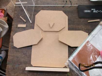 展覧会に向けての作品を作っています。初めて使うのこぎりにドキドキでした。