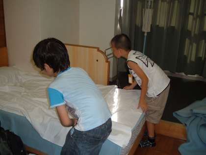 少年自然の家では、ベッドメーキングや食事の配膳など「自分でできることは自分でやろう」を目標にがんばりました。