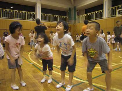 7日夜に行われたキャンドルサービスでは、体育館の中央のキャンドルを囲んでみんなで歌をうたったり、ゲームをしたり、タタロチカを踊ったりと楽しく盛り上がりました。