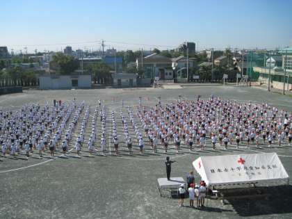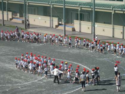 今朝は、全校練習を行いました。赤白に分かれて整列し、自分の位置を覚えました。その後、退場の練習をし児童席の位置を覚えました。しっかり練習できました。