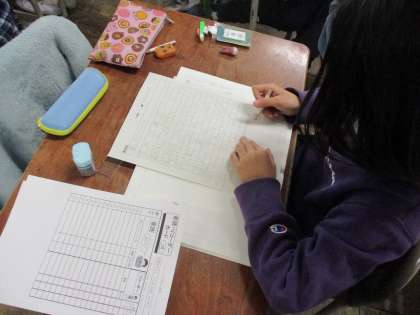 今日は気持ちや情景などを表す様々な言葉を使って冬休みの思い出を書きました。相手に伝わるように言葉の使い方を考えて書きました。