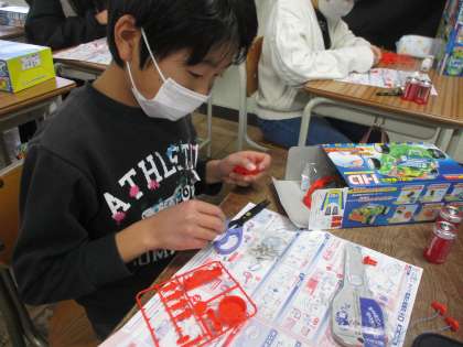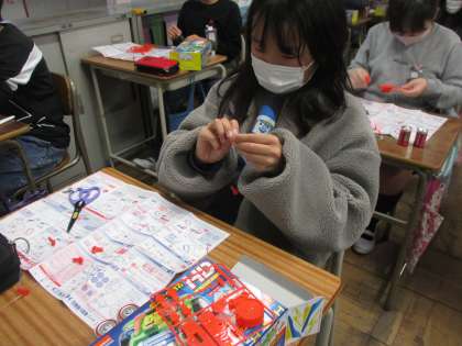 理科では、電磁石を作っています。