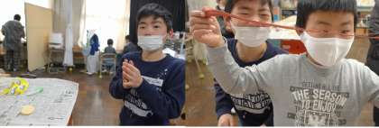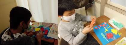赤と黄色のカラー粘土を使用したり、白い紙粘土に絵の具を混ぜたりして、作りたいものに合わせて色を工夫しました。