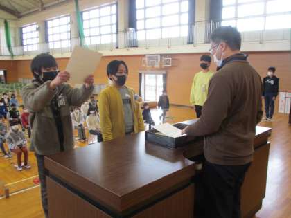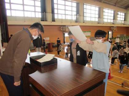 起立・礼・着席の仕方や、卒業証書の授与を練習しました。背筋を伸ばし、姿勢を崩さない子がほとんどで、緊張感のある練習になりました。子どもたちから「緊張した」「疲れたけど、みんなが揃っていて気持ちが良かった」という声が聞こえました。明日も練習が続きます。練習時間が少ないですが、本番に向けてがんばりましょう!