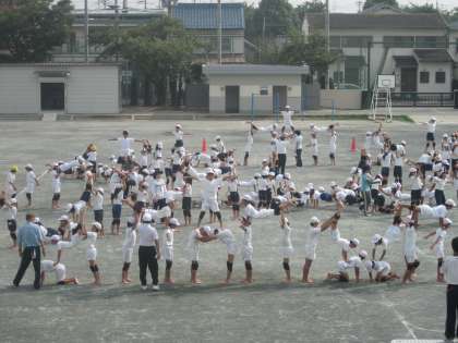 5・6年生が心を一つにして、組立体操に取り組んでいます。フィナーレも完成に近づいています。5・6年生の息のあった演技を期待しています。