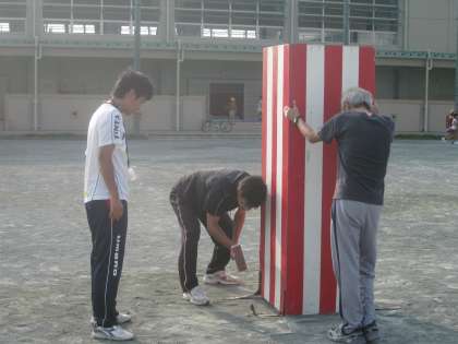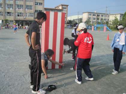 授業後、入退場門の設置をしました。運動会に向けて着々と準備が進んでいます。