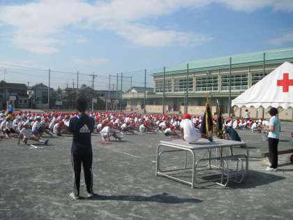 今日は、最後の全校練習を行いました。入場、開会式、ストレッチ体操を本番と同じように行いました。