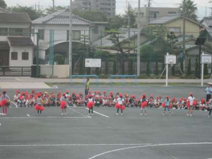 今朝の「向山タイム」は、応援の練習を行いました。今日は、競争遊戯のときの応援の練習です。運動会当日は、大きな声で応援して盛り上げていきましょう。