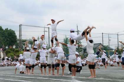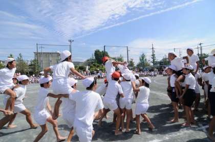澄みきった秋空のもと、運動会が開かれました。6年生83名は「心を一つに」を合言葉に、徒競走(上)騎馬戦(中)組立体操(下)と気持ちを一つにして演技しました。どの子も満足感いっぱいの笑顔で閉会式を迎えました。