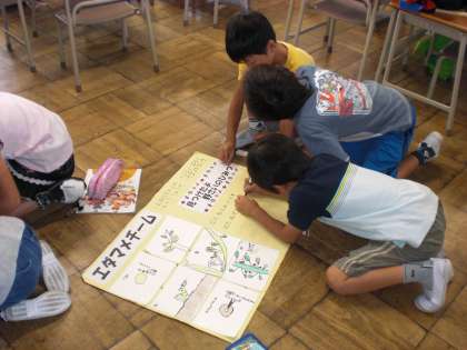 (上):生活科では、これまで世話をしていた野菜について、分かったことや気づいたことを「やさい新聞」にまとめています。