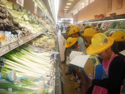 お店の人やお客さんにインタビューしたり、売り物の産地やお店の様子をメモしたりと積極的にいろいろなことを調べていました。