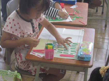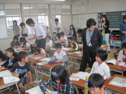 2時限目に2年4組で算数の研究授業が行われました。「繰り下がりが2回ある筆算ができるようにしよう」というめあてです。計算棒を操作して、求め方を考えました。