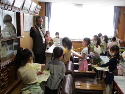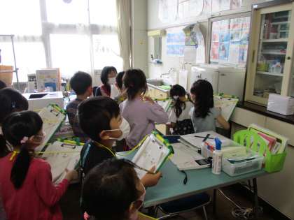 いろいろな人の協力を得て、学校のことを知るために、学校探検をすることができました。保健室や職員室、理科室など特別教室や他学年の勉強をしている様子など見学することができました。校長室では校長先生に質問したり、ペッパー君を珍しそうに見る姿が見られました。今日は学校中を歩き回って、多くのことを学ぶことができました。