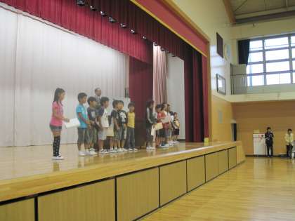 今日の児童朝礼では、最初に3つの表彰伝達がありました。