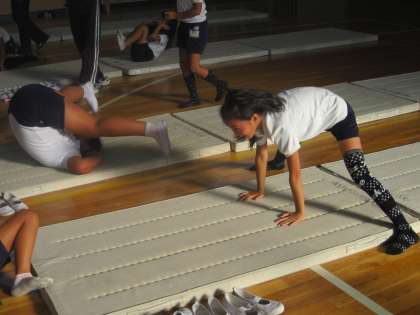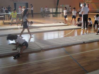 今日の体操クラブは、マット運動です。それぞれグループごとに練習し、最後は技を組み合わせて練習しました。