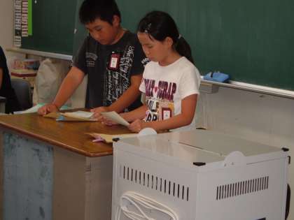 児童会役員選挙が行われました。5年生からは副会長に3名、書記に1名の立候補がありました。書記は1名のため、規約に基づき当選が決まりました。選挙管理委員の子どもたちの頑張りでスムーズに行われました。