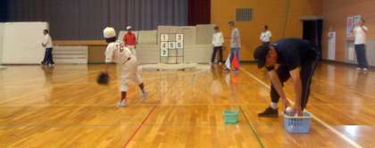 今日は、公民館主催の「ストラックアウト」が向山小学校屋内運動場で行われました。