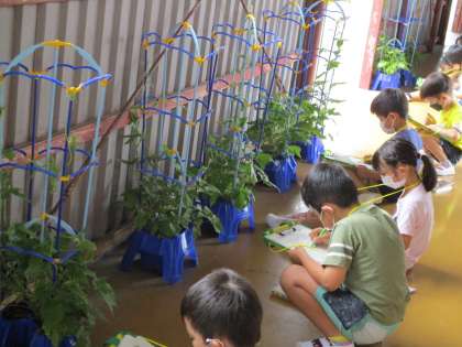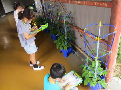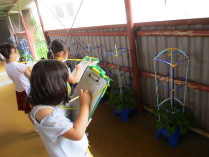 葉の形を見たり、つるの長さを測ったりたり、楽しく観察をしました。