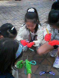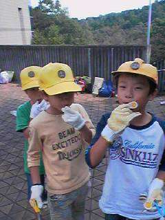 どんぐりで笛を作りました。 このあと広場へ移動してお弁当を食べます。