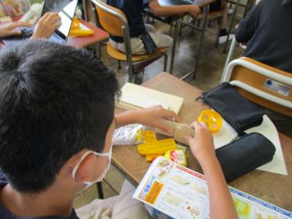 昨日から2学期が始まり、今日から授業がスタートしました。図画工作ではテープカッターを作成します。どんなデザインにしようか一生懸命考えています。どんな作品になるか楽しみです。