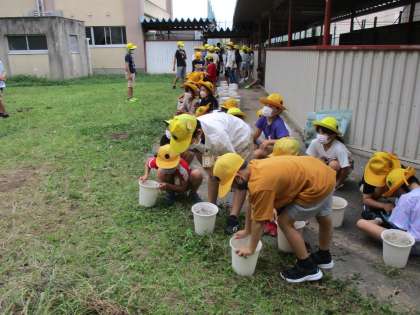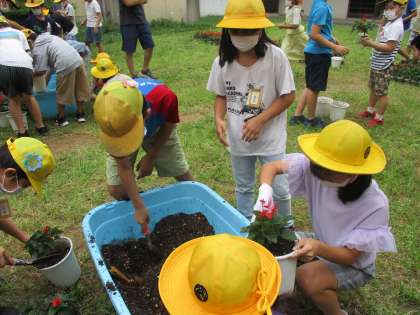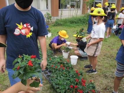 花いっぱい運動でサルビアの苗を植えました。縦割り班のお兄さんお姉さんにサポートをしてもらいながら、丁寧に植えることができました。みずやりなど、お世話もがんばりましょうね。