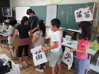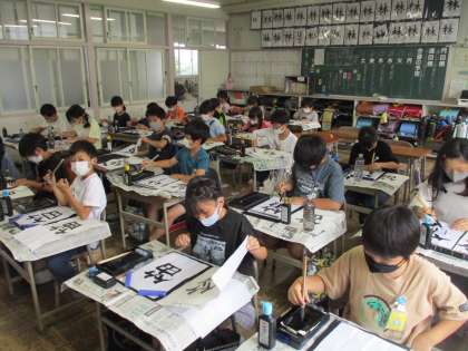 書写では,「笛」を書きました。へんとつくりの大きさや,ななめに線を書く意識をして取り組みました。片付けまで真剣に取り組んでいました。