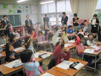 午後から、1年3組と4年2組の教室で研究授業が行われました。低学年の先生と高学年の先生に分かれて、授業を見ました。子どもたちは、一生懸命授業に取り組み、自分の考えをしっかり発表できました。