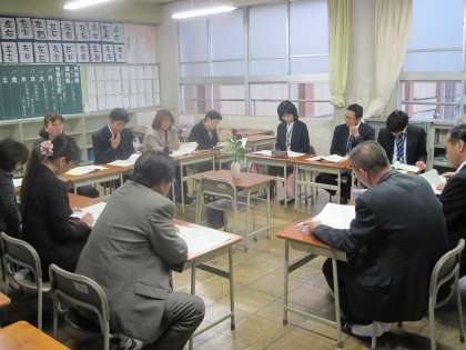 午後の研究授業のあと、低学年部会と高学年部会に分かれ、先生たちの勉強会を行いました。「分かる授業」「楽しい授業」をめざして、どのようにしたらよいか今日の研究授業をもとに話し合いました。このような勉強会を繰り返すことで、先生たちは力を付けていきます。