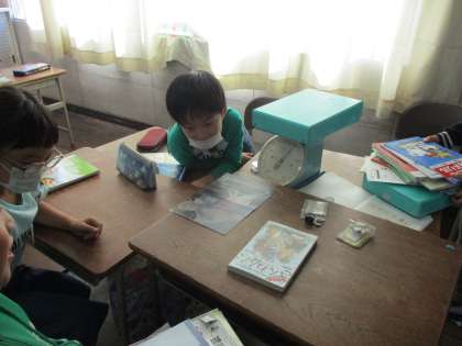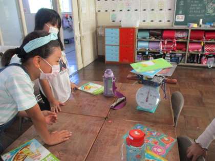 はかりを使って、身の回りのものの重さを調べました。使い方のポイントを思い出しながら、班のみんなと協力して正しく測ることができました。