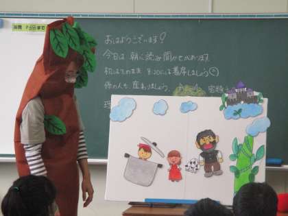 今日はりぼんさんによる読み聞かせがありました。3組ではパネルシアターによる読み聞かせが行われました。移り変わるパネルの様子や、読み聞かせの方々の姿に驚きながらも、子どもたちは朝から楽しさそうな様子でした。りぼんのみなさん、ありがとうございました。