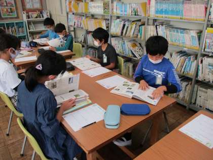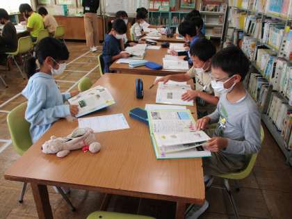 今日は,司書さんに百科事典「ポプラディア」の使い方を教えていただきました。みんな楽しんで言葉を調べていました。