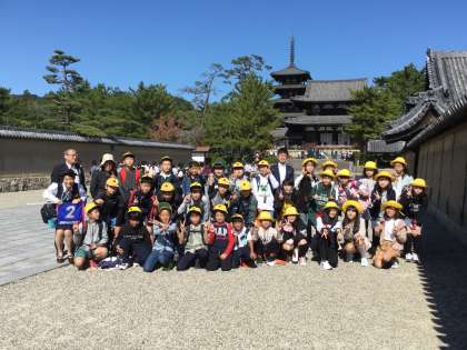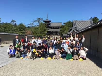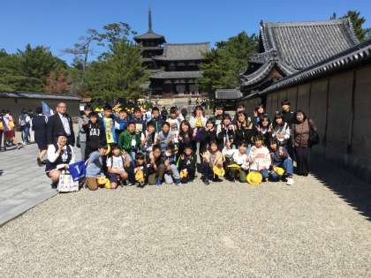 法隆寺をバックに記念写真を撮りました。