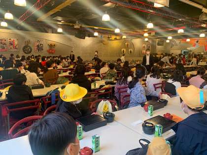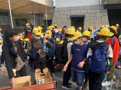 東映太秦映画村で昼食を食べたあとは、飲み物をもらって班別自由行動です。