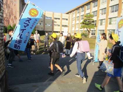 11.9 あいさつ運動 公開日 2022/11/10 更新日 2022/11/10 PTA活動 本日もPTAの保護者の方の協力を得て、あいさつ運動を行いました。 お母さん方の声掛けで、子どもたちはいつもより大きな声であいさつをしていました。