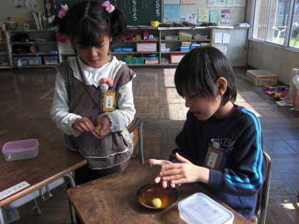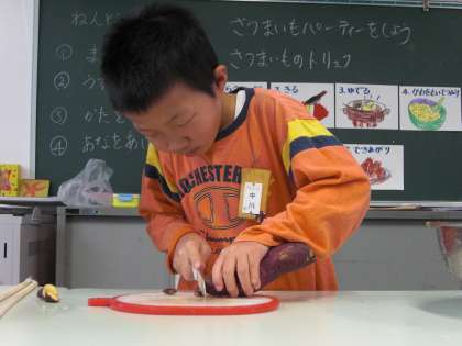 さつまいもを切ったり、まるめたりして、最後にココアをかけてできあがりました。