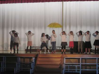 声よく出ているといわれ、「エンディングは感動しましたよ」と褒められました。期待のこめられた、たくさんのアドバイスをいただき、あと一週間でさらに素敵な劇になるようにみんなで気持ちをひきしめました。