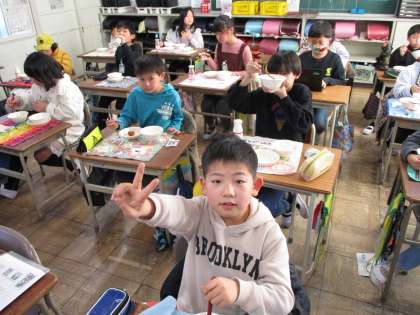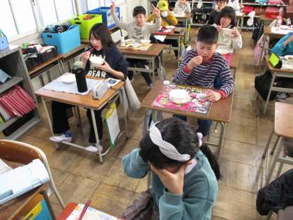 自分の役割を一生懸命に全うしています。みんなで協力して、配膳することができています。また、食べているときは、黙食に努め、感染症対策を心がけています。
