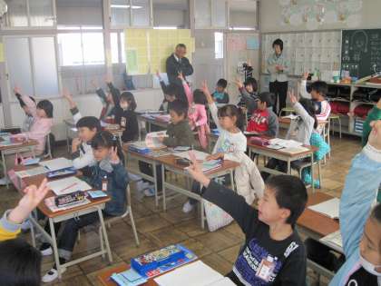 2限目に2年3組で算数の研究授業が行われました。子どもたちは、「1のだんの九九を作ろう」をめあてに意欲的に取り組みました。最後に1の段の九九を大きな声で唱えることができました。