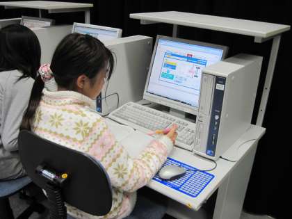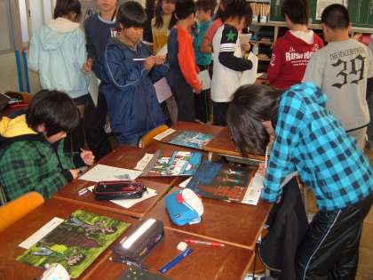 上:友達の作品を見て、感想を書いています。