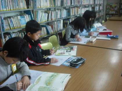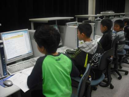 今日は、国語の学習で、「研究レポートづくり」の資料集めをしました。自分の知りたい事を図書館の本で調べたり、パソコン室でインターネットを使って調べたりするなど、自分の力で探し、取り組もうとする姿がみられました。