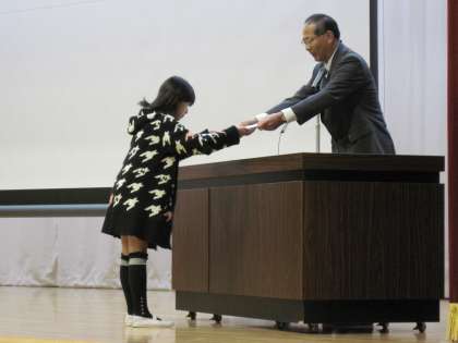 今朝の児童朝礼では、最初に「税に関する習字」で銀賞に輝いた児童の表彰伝達が行われました。その後、校長先生による「とべないほたる」の読み聞かせがありました。そして、この「とべないほたる」を題材にして、人権尊重のお話がありました。
