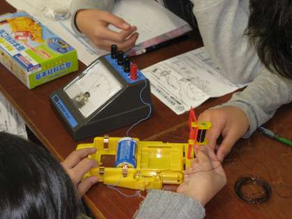 上:(1組)理科の実験で、電磁石に流れる電流の大きさを調べました。