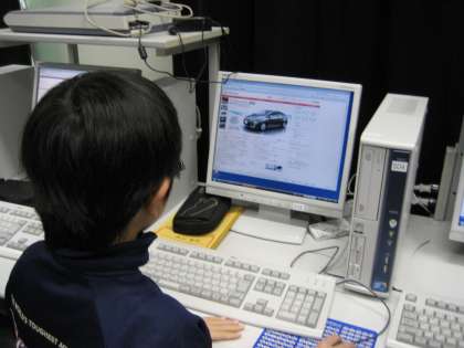 下:(3組)パソコンで情報を集めています。社会科で学習した自動車について調べました。