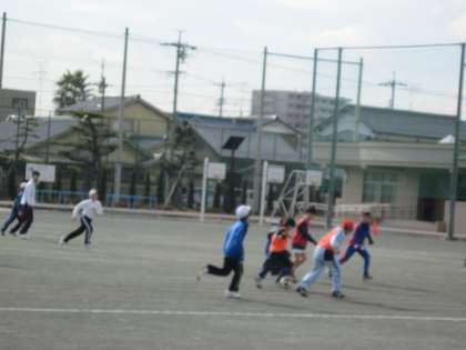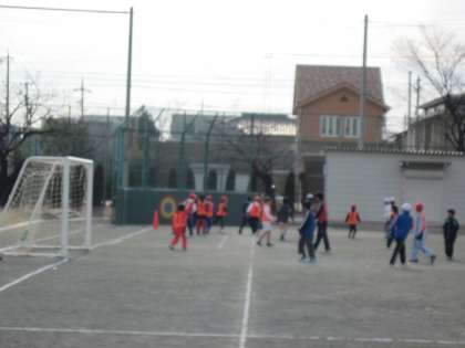 運動場ではサッカー部が元気にボールを追いかけ、寒さなんて感じない、いい動きをしていました。